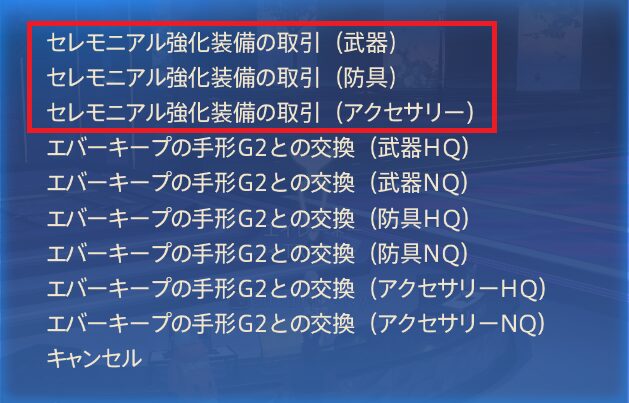① マケボやクラフターで「セレモニアル」シリーズの新式を入手する。
